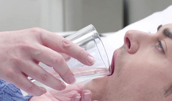 * For people with difficulty swallowing (dysphagia), a caregiver should help to prevent water from entering the airway.